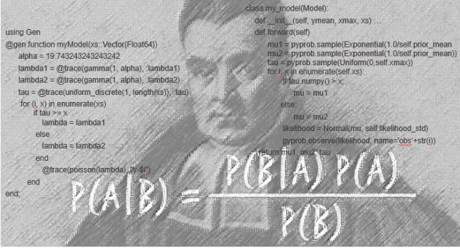 Abstract. Probabilistic programming languages (PPLs) allow us to model the observed behavior of probabilistic systems in terms its underlying latent variables. Using these models, the PPL provides tools to make inferences concerning the latent variables that give rise to specific observed behaviors. In this short report, we look at two such programming languages: Gen, a language based on Julia from a team at MIT and PyProb which is based on Python and Torch from the Probabilistic Programming Group at the University of Oxford. These are not the only PPls nor are they the first, but they illustrate the concepts nicely and they are easy to describe. To fully understand the concepts behind these systems requires a deep mathematical exploration of Bayesian statistics and we won’t go there in this report. We will use a bit of math, but the beauty of these languages is that you can get results with a light overview of the concepts.