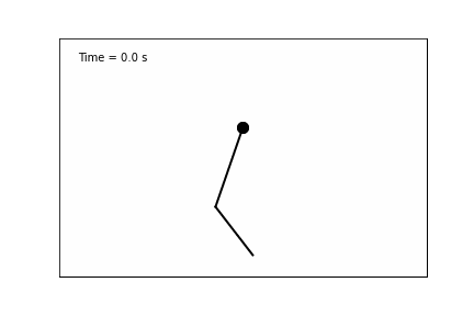We have adapted a very nice program by Mohammad Asif Zaman (github) by adding our LSTM network as above.   The initial condition is to hold the configure vector in a position for a given value for the two angles with the angular velocities both zero and release it.   We have a function