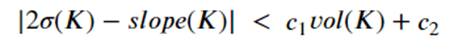 Based on this hint they authors proposed a conjecture: for a hyperbolic knot K define the slope(K) to be the real part of the fraction longitudinal translation/meridinal_translation. Then there exists constants c1 and c2 such that