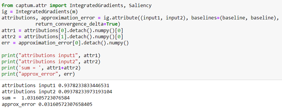 From Captum we can grab the IntegratedGradient and Salience operators and apply them as follows.