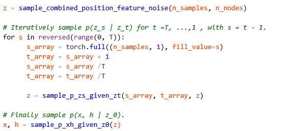This is the basic abstract denoising diffusion algorithm. We next turn to the case of denoising graph networks for molecules.