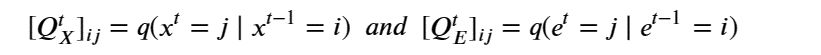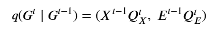 Given a graph as the pair nodes, edges as Gt = (Xt , E t ) the noise transitions is based on matrix multiplications as