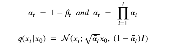 For details see Ho, Jain and Abbeel in Denoising Diffusion Probabilistic Models or the excellent blog by Lilian Weng What are Diffusion Models?.