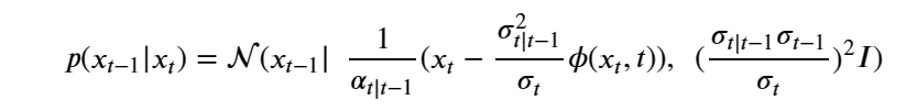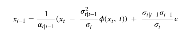 The noise introduced in X to get to xt is σtε. To denoise and compute pꝋ(Xi-1 | Xi ) we introduce and train a network ϕ(xt, t) to model this noise.