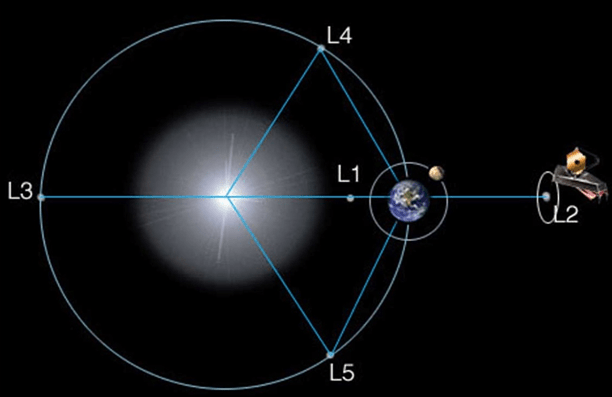- The James Webb space telescope is parked beyond earth’s orbit at the second Lagrange point for the sun earth system. Please derive the equations that locate that point. Let r be the distance from the earth to the second Lagrange point which is located beyond earth’s orbit. use Newton law of gravity and the law describing the centripetal force for an equation involving r. Then solve the equation.