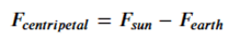 [ F_{centripetal} = F_{sun} + F_{earth} ]
