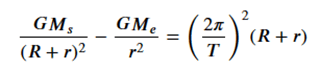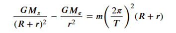 - The balance of forces equation for L2 can be described as follows: [ \frac{G M_s}{(R + r)^2} + \frac{G M_e}{r^2} = \left(\frac{2 \pi}{T}\right)^2 (R + r) ]