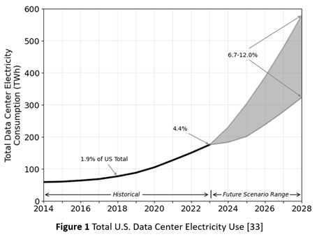 [33] Arman Shehabi, Sarah Josephine Smith, Alex Hubbard, Alexander Newkirk, Nuoa Lei, Md AbuBakar Siddik, Billie Holecek, Jonathan G Koomey, Eric R Masanet, and Dale A Sartor, “2024 United States Data Center Energy Usage Report,” Lawrence Berkeley National Laboratory, DOI 10.71468/P1WC7Q, 2024